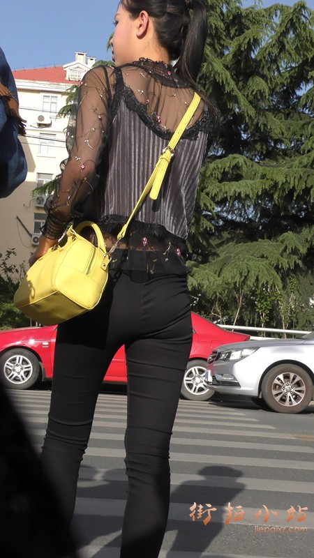 4k-街拍黑色蕾丝衣紧身裤马尾辫漂亮小姐姐