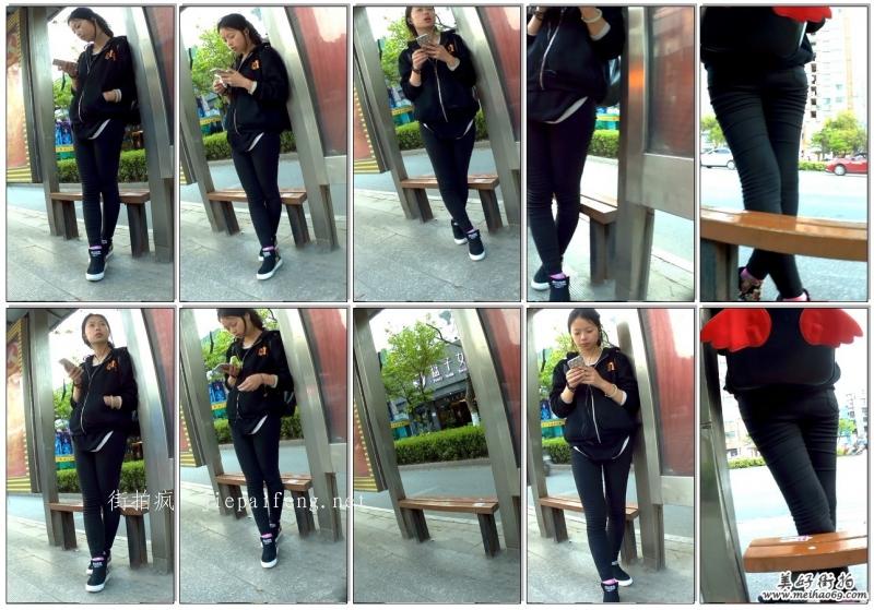 [心花摄大师]站台交叉双腿,PP姿势真撩人黑色紧身裤学生媚