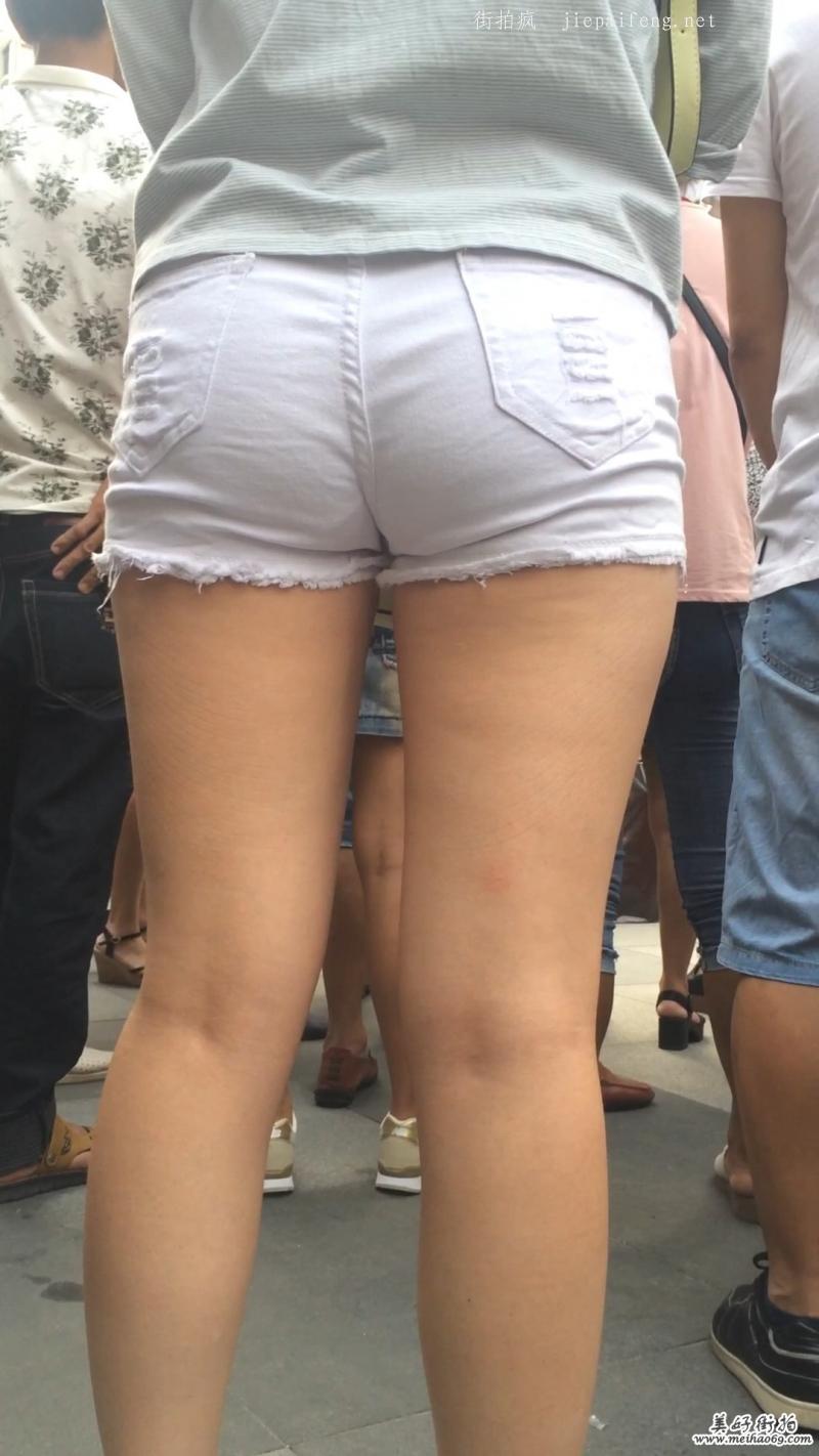 街拍白色紧绷牛仔短裤极品圆臀美眉[MOV/200M]