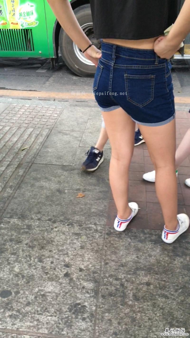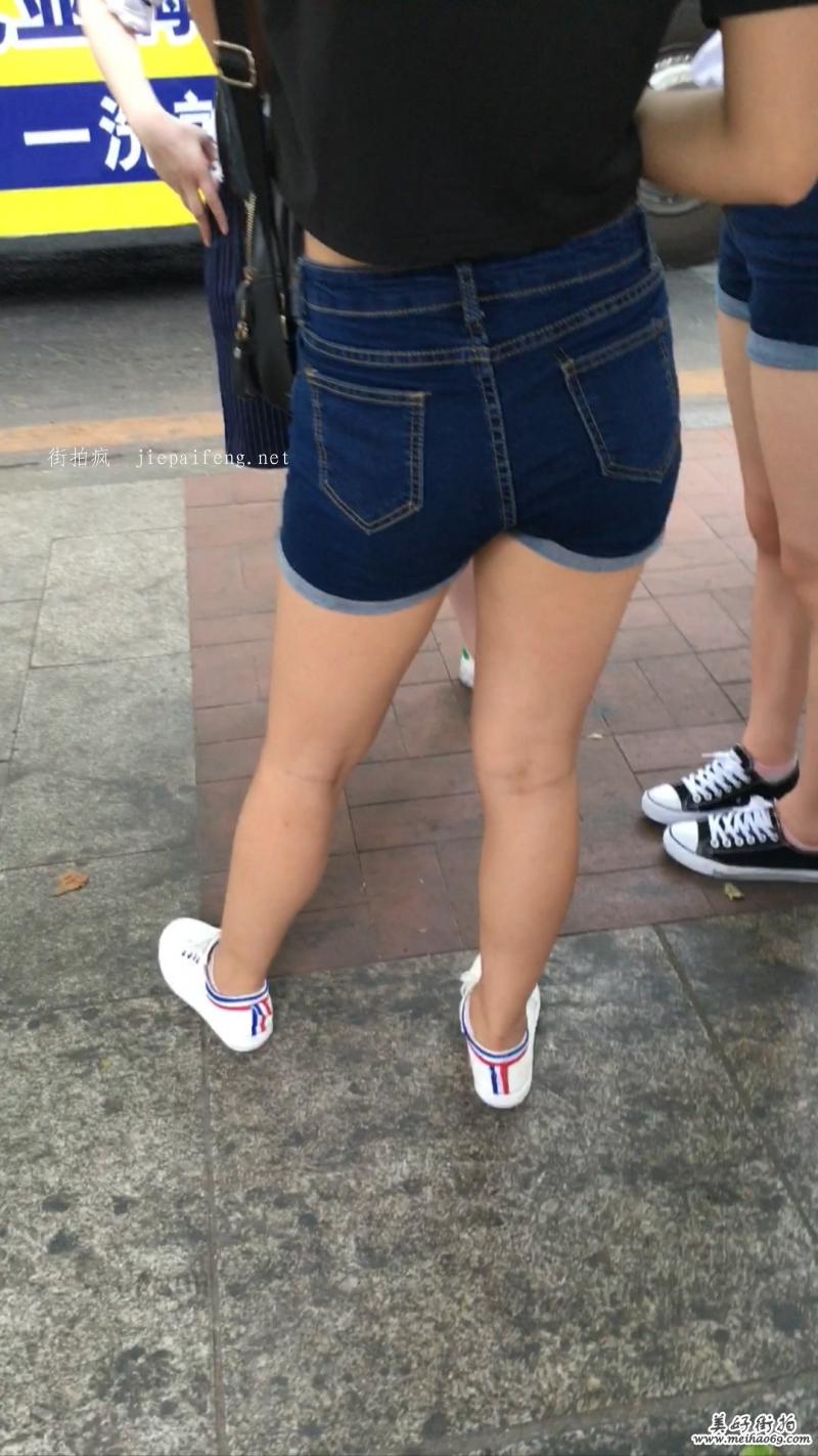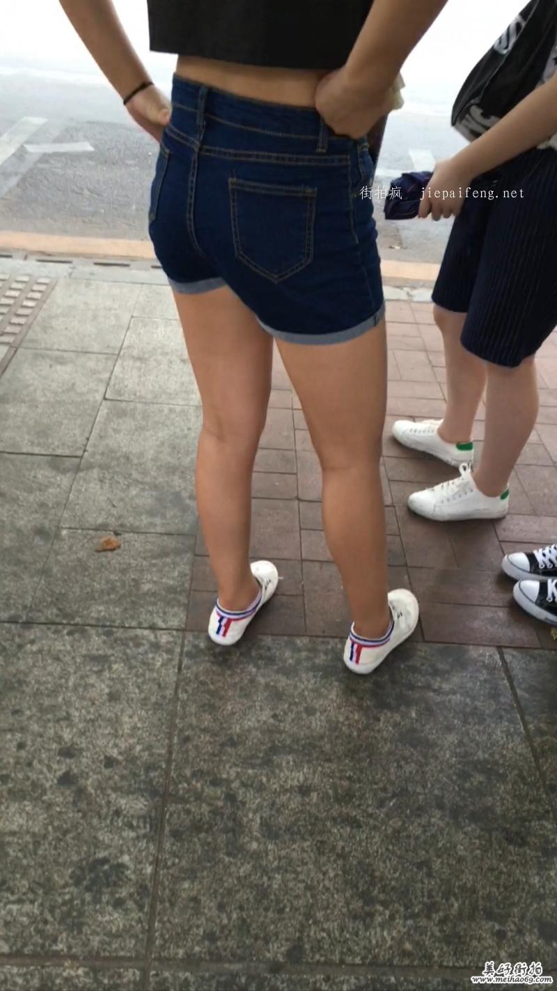 等车的两个紧身蓝色牛仔短裤饱满丰臀美眉[MOV/369M]