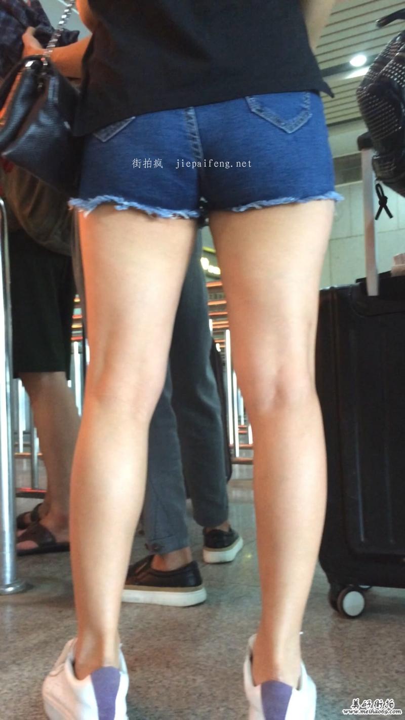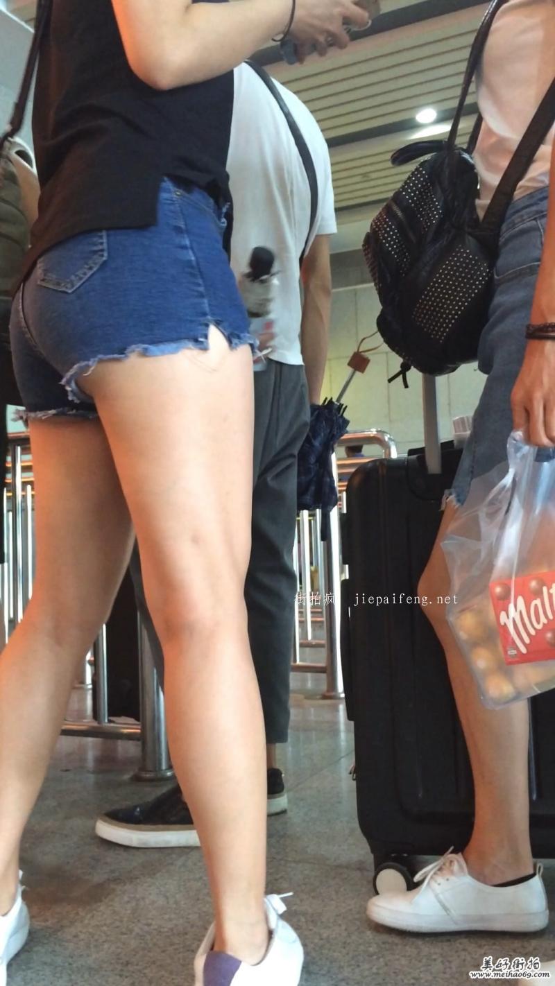 车站排队买票的蓝色紧绷短裤饱满圆润翘臀白腿妹子[MOV/503M]