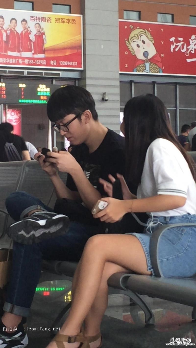 车站等车的极品白腿牛仔裙美眉[MOV/376M]
