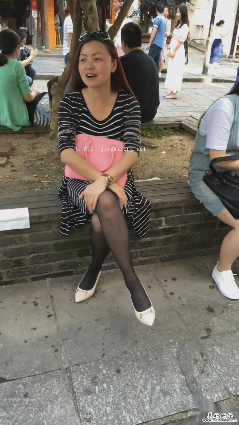花坛休息的黑色美丝条纹连衣裙漂亮美少妇[MOV/453M]