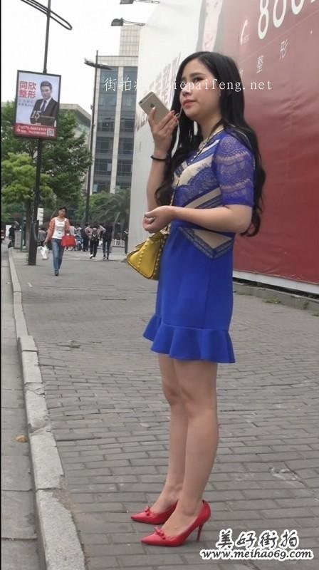 街拍蓝色短裙红色高跟鞋少妇[MP4/268M]