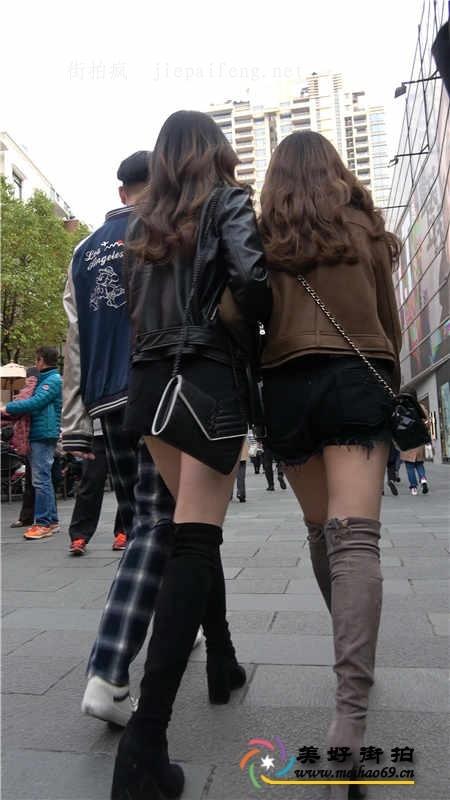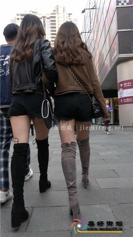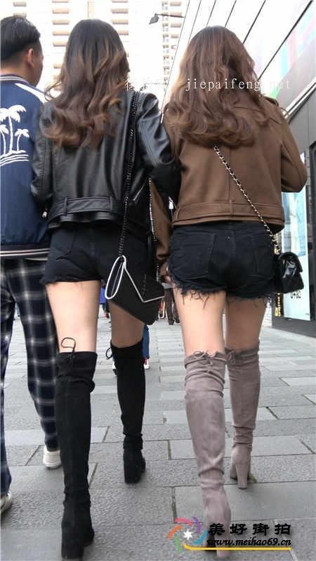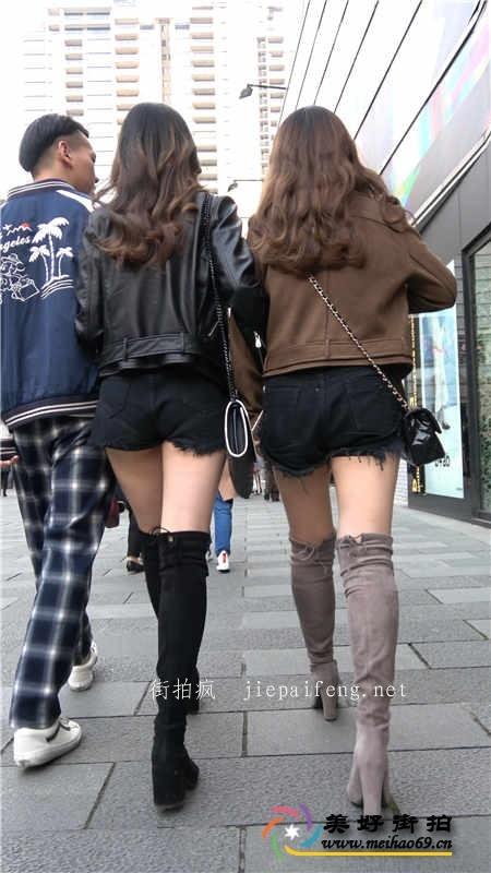 4K-街拍两个黑色牛仔热裤极品长腿圆润翘臀美女[MP4/1G]