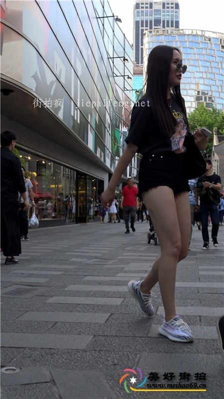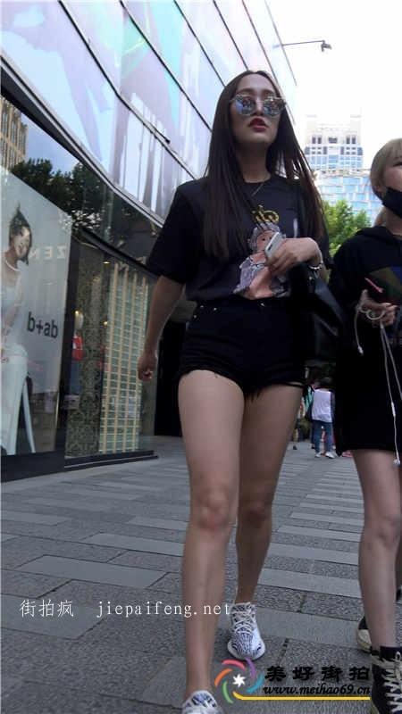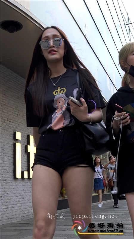 4K-街拍性感黑色热裤露臀肉长发美女白腿[MP4/842M]