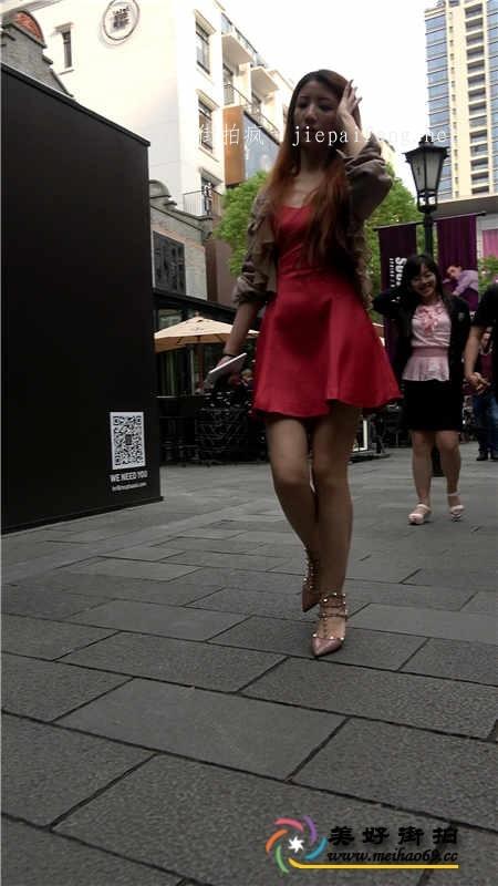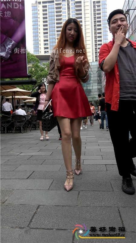 4K-街拍红色连衣短裙长发美少妇性感美腿[MP4/1.4G]