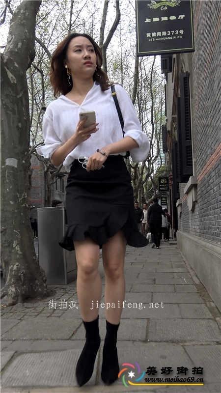 4K-街拍黑色包臀短裙极品白腿OL美眉[MP4/515M]