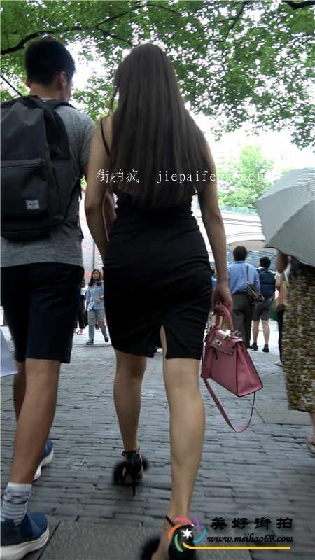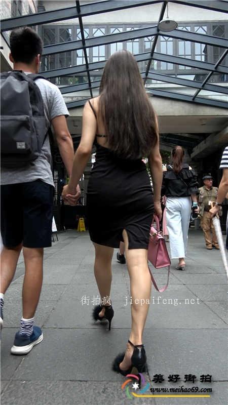 4K-街拍黑色吊带漏背连衣包臀裙长发美女美腿丰臀[MP4/1.18G]