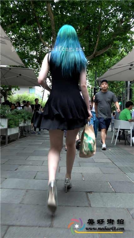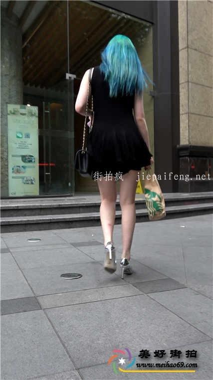 4K-街拍黑色连衣短裙银白高跟肉丝美腿美女[MP4/660M]