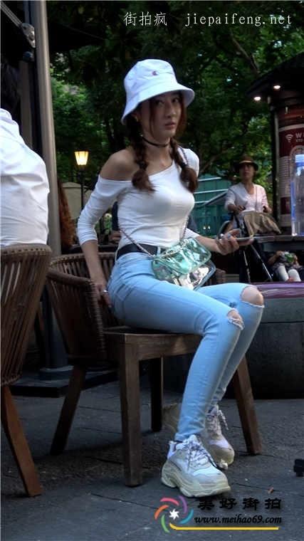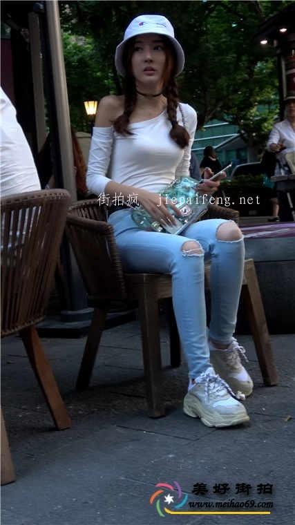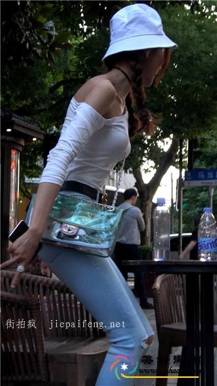 4K-街拍蓝色紧身牛仔裤美胸美女极品长腿圆润翘臀[MP4/587M]2
