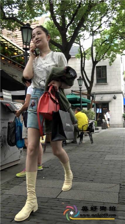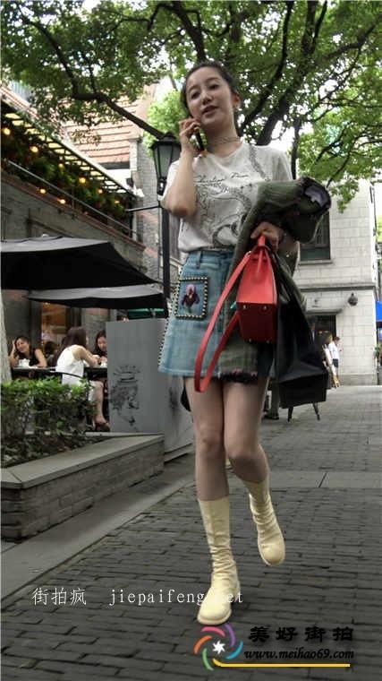 4K-街拍蓝色牛仔短裙性感长腿美女[MP4/716M]