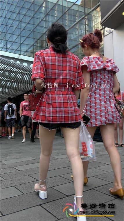4K-街拍牛仔热裤和连衣短裙两个美少妇性感美腿[MP4/605M]