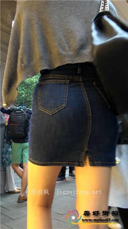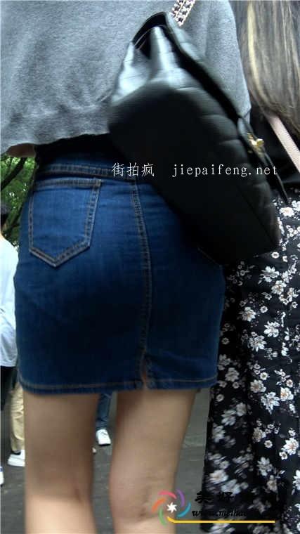 4K-街拍蓝色紧绷牛仔包臀短裙美女极品性感饱满翘臀[MP4/1.34G]3