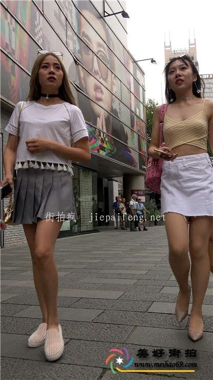 4K-街拍两个性感吊带短裙美女极品白皙长腿[MP4/1.11G]
