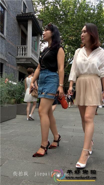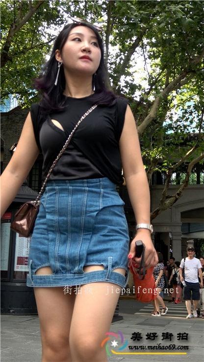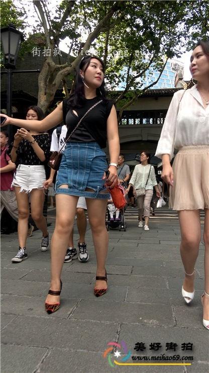 4K-街拍牛仔包臀短裙高跟美腿性感大胸美女[MP4/492M]