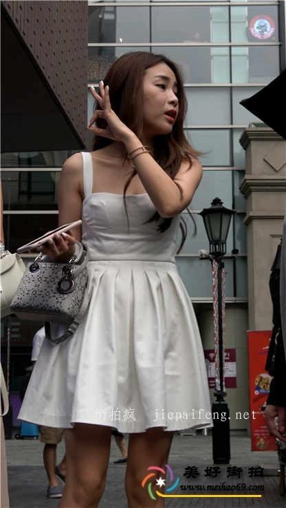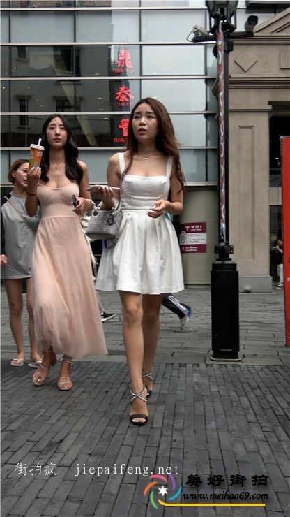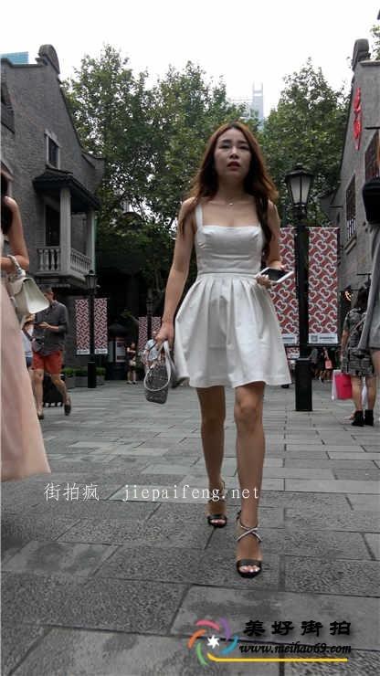 4K-街拍性感白色吊带裙长腿高跟性感美腿漂亮美女[MP4/984M]