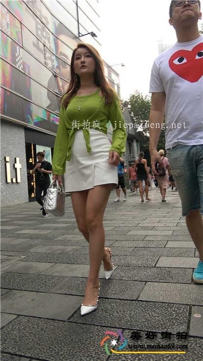4K-街拍白色包臀短裙高跟性感美腿长发漂亮美女[MP4/1.2G]