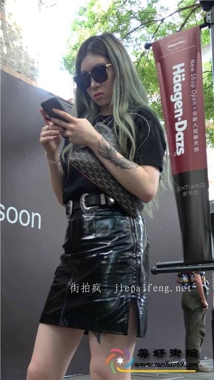 4K-街拍黑色包臀皮裙黑超墨镜肉丝高跟美腿美眉[MP4/1.74G]