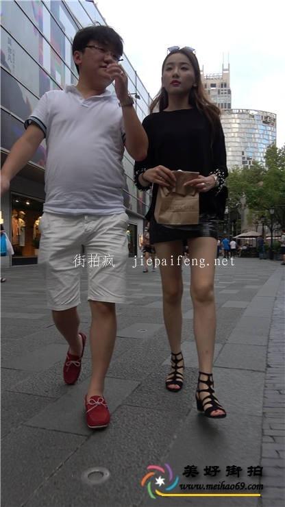 4K-街拍黑色包臀皮短裙性感长腿高跟美女[MP4/1.47G]