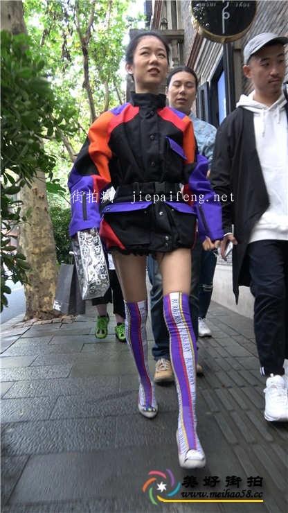 4K-紧身黑色热裤紫色高筒袜极品长腿高跟性感美女[MP4/1.23G]