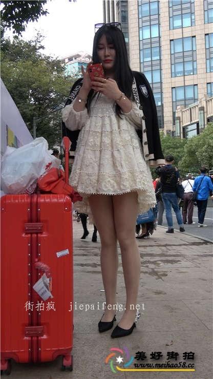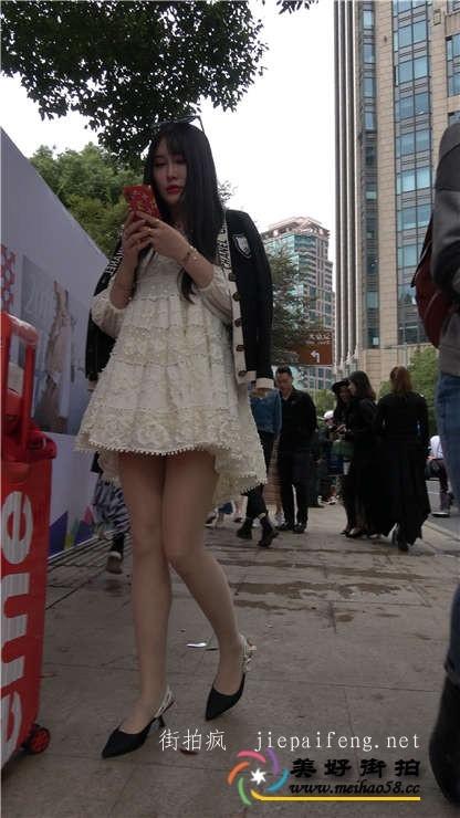 4K-街拍白色蕾丝连衣裙性感长腿丝袜高跟美女[MP4/1.68G]