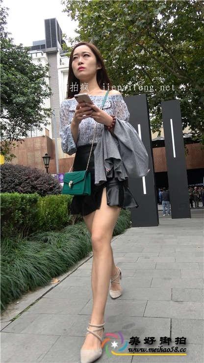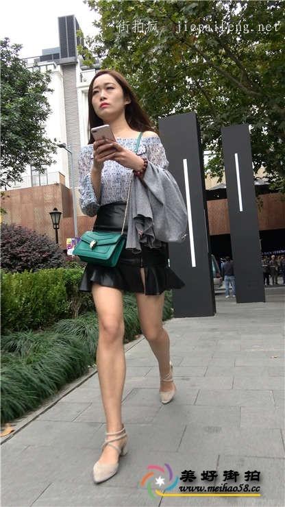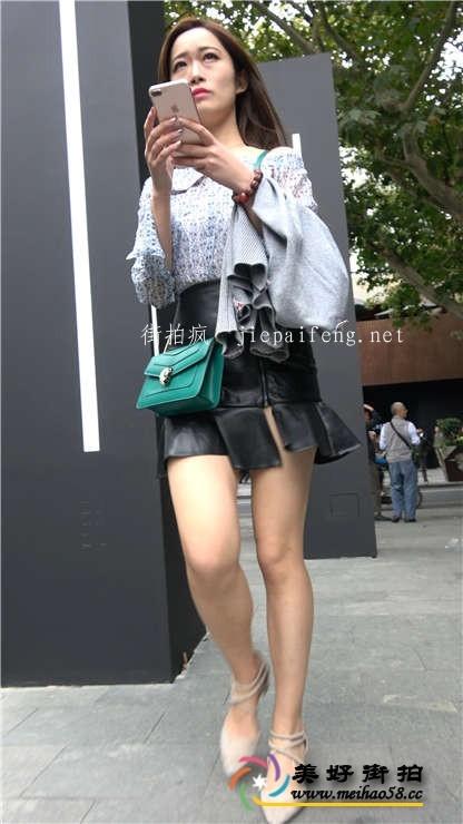 4K-街拍黑色包臀皮短裙高跟性感白皙长腿美女[MP4/500M]
