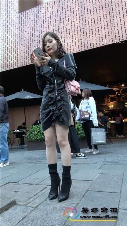 4K-街拍黑色连衣短裙肉色丝袜长腿高跟性感身材美女[MP4/1.2G] 2