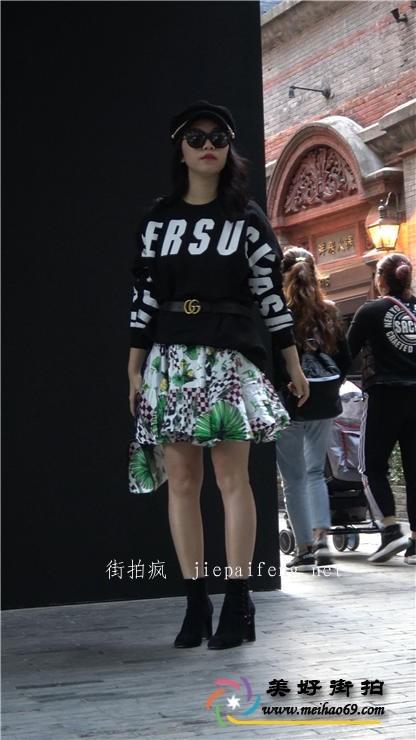 4K-街拍花色公主短裙肉丝长腿高跟墨镜美女[MP4/1.41G]