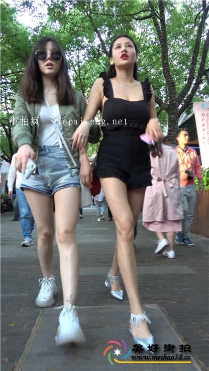 4K-街拍黑色短裤性感大白长腿高跟漂亮美女[MP4/0.99G]