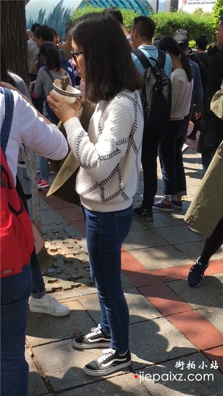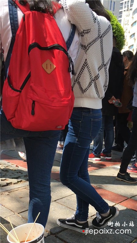 街拍青春气息紧身蓝色牛仔裤美眉