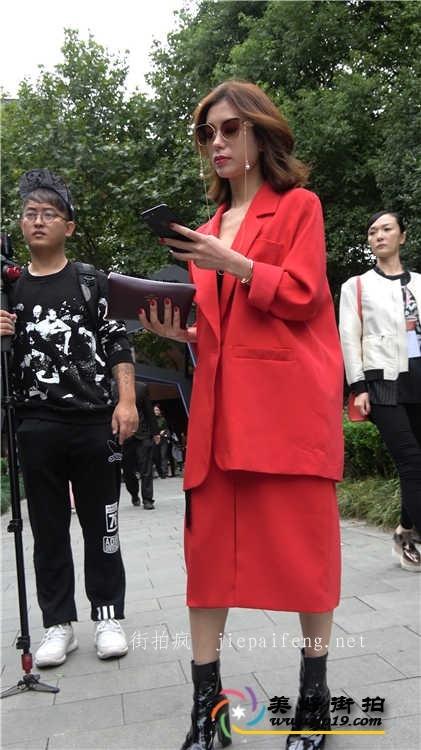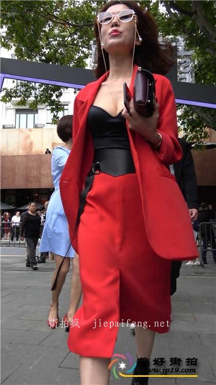 4K-街头拍照的红色风衣白胸高挑美女[MP4/2.4G]