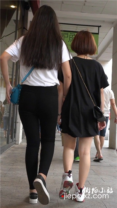 紧身黑裤苹果臀美眉跟闺蜜逛街